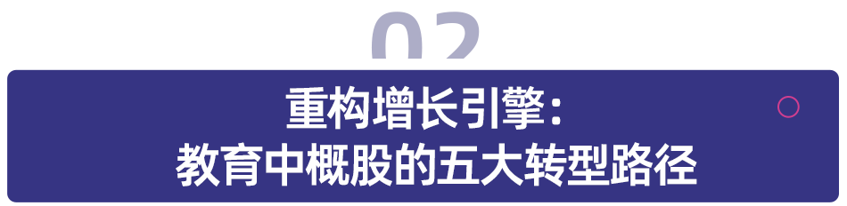 整体来看,教育中概股的转型路径主要集中在五个方向:一是以智能化和 AI 技术为驱动,探索教育科技平台化;二是依托智能硬件,构建「硬件+内容+AI 应用」的闭环生态;三是聚焦低龄儿童启蒙,深耕素质教育和互动内容;四是剥离国内业务、押注海外市场,开拓成人与国际化教育需求;五是跨界延伸至文化消费与素养教育,打造「教育+文化消费」的多元增长模型。