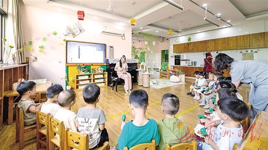 “针对2岁至3岁幼儿成长特点,我们设置了生活教育、感官体验、体能运动、奥尔夫音乐等课程,提升幼儿自理能力,激发他们的兴趣爱好。”荔城区第二实验幼儿园副园长张燕说,早教中心依据我市普惠托育要求制定收费标准,设有独立的厨房,营养食材由生鲜基地每日配送,保证食材安全、新鲜,并由专业厨师烹饪,为孩子们的营养健康保驾护航。通过提供专业、保教结合的托育照护服务,助力家长解决工作与家庭之间的平衡难题。