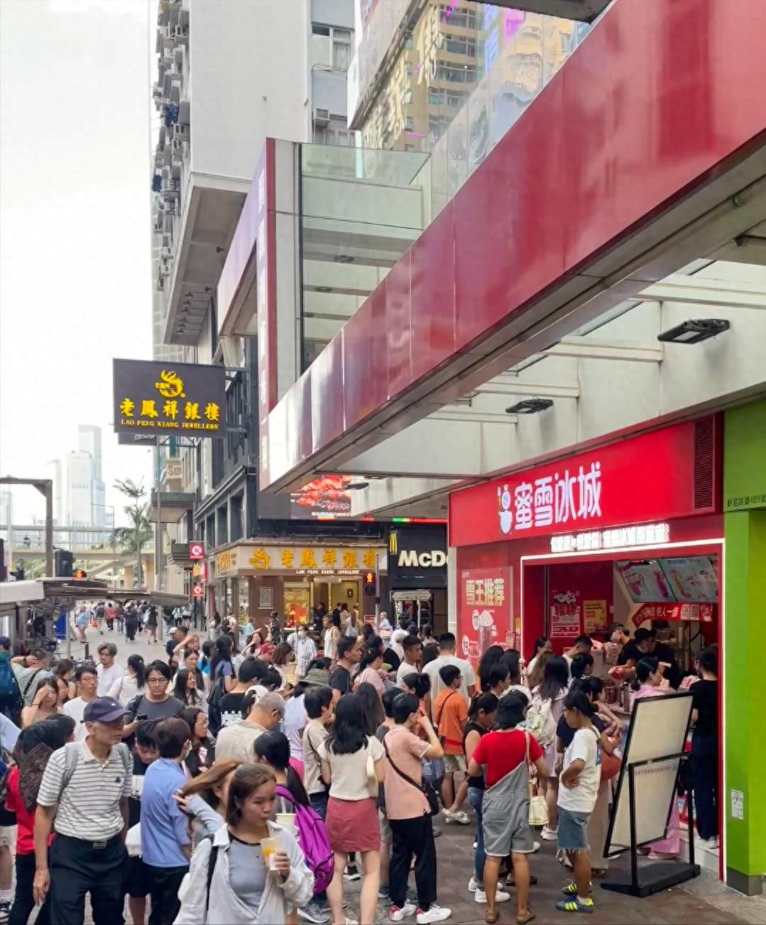 而离谱的是,雪王的这两个店,都还是天天排队的,而同在一条街的其他茶饮店,生意却非常的一般,有些甚至可以说是非常的惨淡,有雪王的两个店,基本上都是堆满人的,而且不是只排队几分钟,而是一直都是那么多人在那边等。