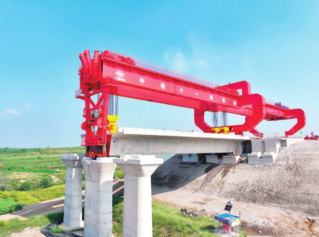 潍宿高铁是京沪高铁辅助通道的关键段落,是一条以路网功能为主、兼顾城际功能的高铁骨干线路,是京沪综合交通走廊的骨干运输方式。中铁十一局承建的站前四标正线长28.47公里,包含五莲北站站场路基、诸城潍河特大桥等4个重难点工程。满堂峪特大桥首榀箱梁的顺利架设,不仅拉开了该桥上部结构施工的序幕,更为潍宿高铁站前四标的建设注入了强劲动力。