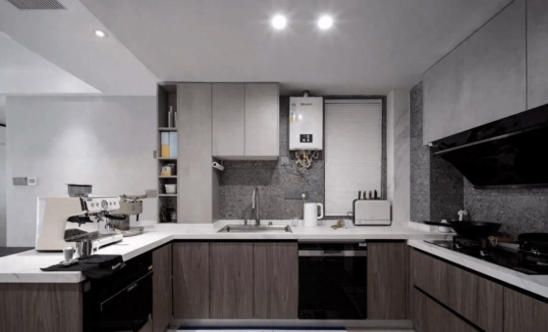 厨房做开放式完全是出于对空间感的考虑,因为恰好在玄关边上,原本是有道实墙的,可是实墙的存在导致玄关太窄太压抑,光线也很阴暗,所以干脆将其拆除,改成开放式,整个空间就更明亮了。