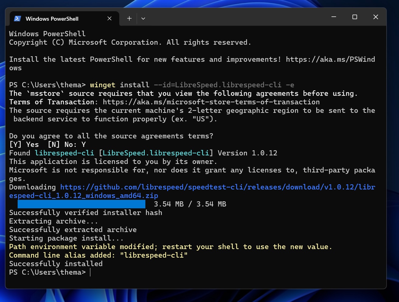 对于追求原生或命令行体验的用户,可以使用开源工具 LibreSpeed。在 Windows Terminal 中,通过 Winget 命令安装 librespeed-cli 后,即可运行测速。