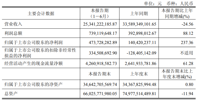 报告显示,闻泰科技公司上半年营业收入为253.41亿元,同比下降24.56%;归母净利润为4.74亿元,同比增长237.36%;扣非归母净利润为3.35亿元,同比增长360.51%;基本每股收益0.38元。