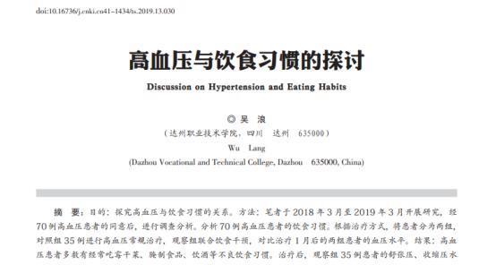[1]吴浪.高血压与饮食习惯的探讨[J].现代食品,2019