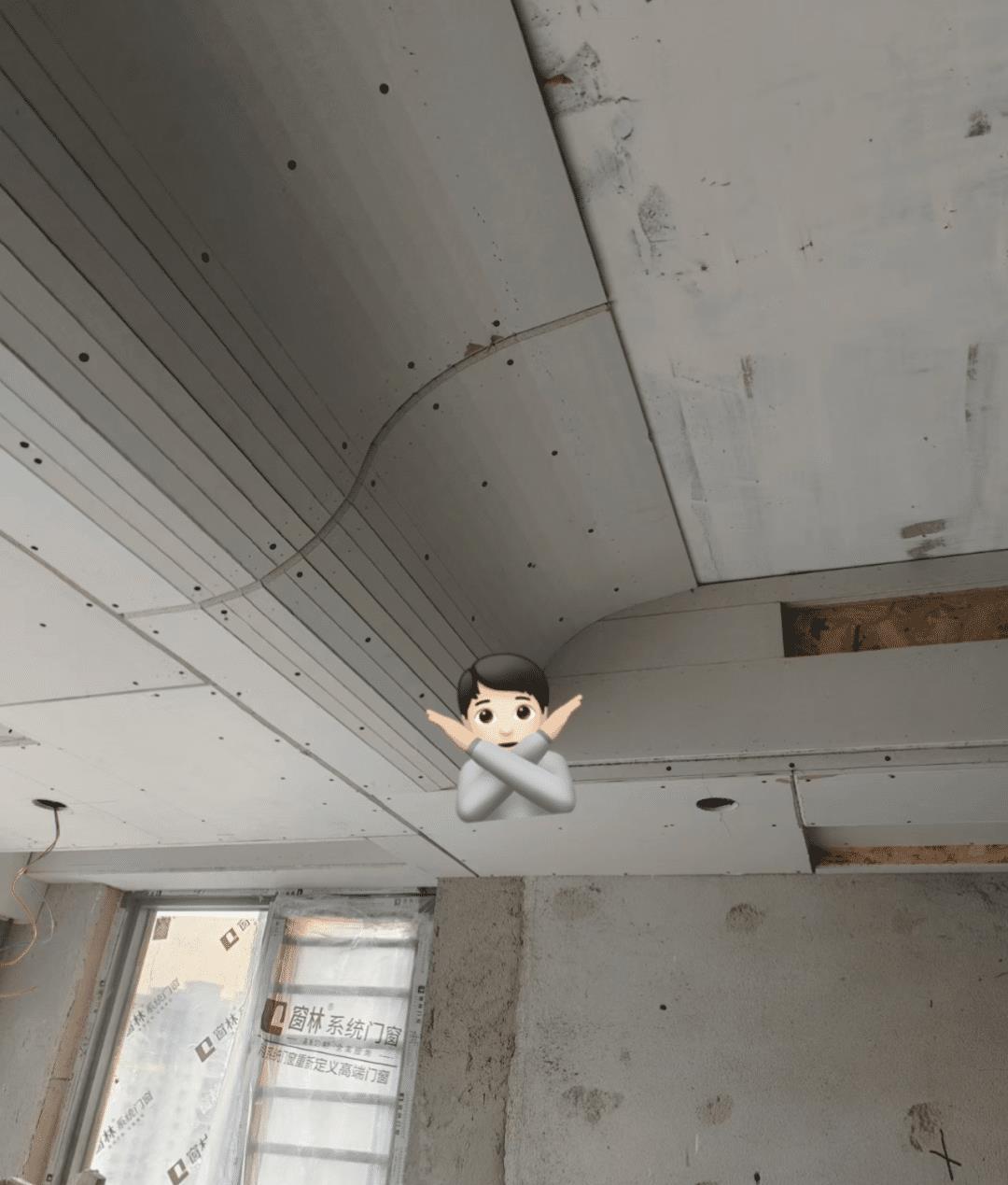 另外,弧形吊顶工艺最重要的就是选择材料。相比需要一条条锯好贴出弧度的石膏板来说,弯板可以直接盖在造型上,师傅打钉固定即可,弧度比石膏板要好,扇灰也不会掉灰。