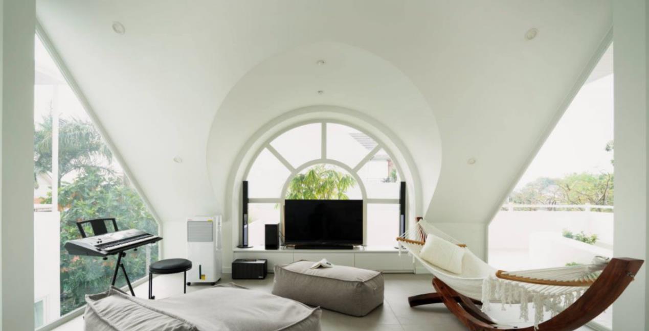 要说最喜欢的空间,可不止是他家的内庭院,连阁楼都精心设计。摆放上钢琴、电视,搬上来沙发、躺椅,也是一个给家人放松休闲的场所,隐蔽的娱乐室。