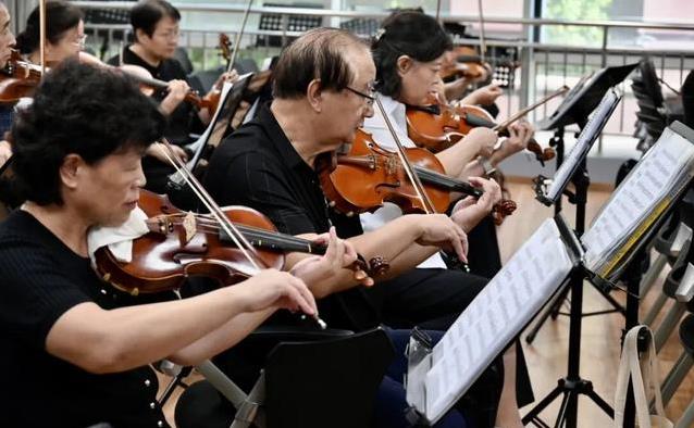 下了第一课,教室里更热闹了。书法班里,老师拿着学员的暑假作业,一张张点评,讲得细致,学员们听得认真。舞蹈教室里,老人们跟着老师学新动作,音乐一响,个个精神头十足,舞步虽慢却有模有样。声乐班的歌声飘出教室,悠扬动听,连路过的人都忍不住停下听两句。器乐班也不甘示弱,琴声、鼓点交织在一起,奏出一曲曲动人旋律。老师教得用心,学员学得专心,教室里满是学习的热情。
