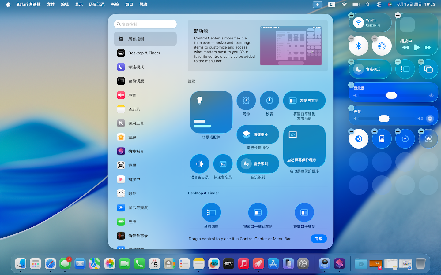 macOS Tahoe 为我们带来了新的视觉风格,改进了聚焦搜索、控制中心、菜单栏等细节。