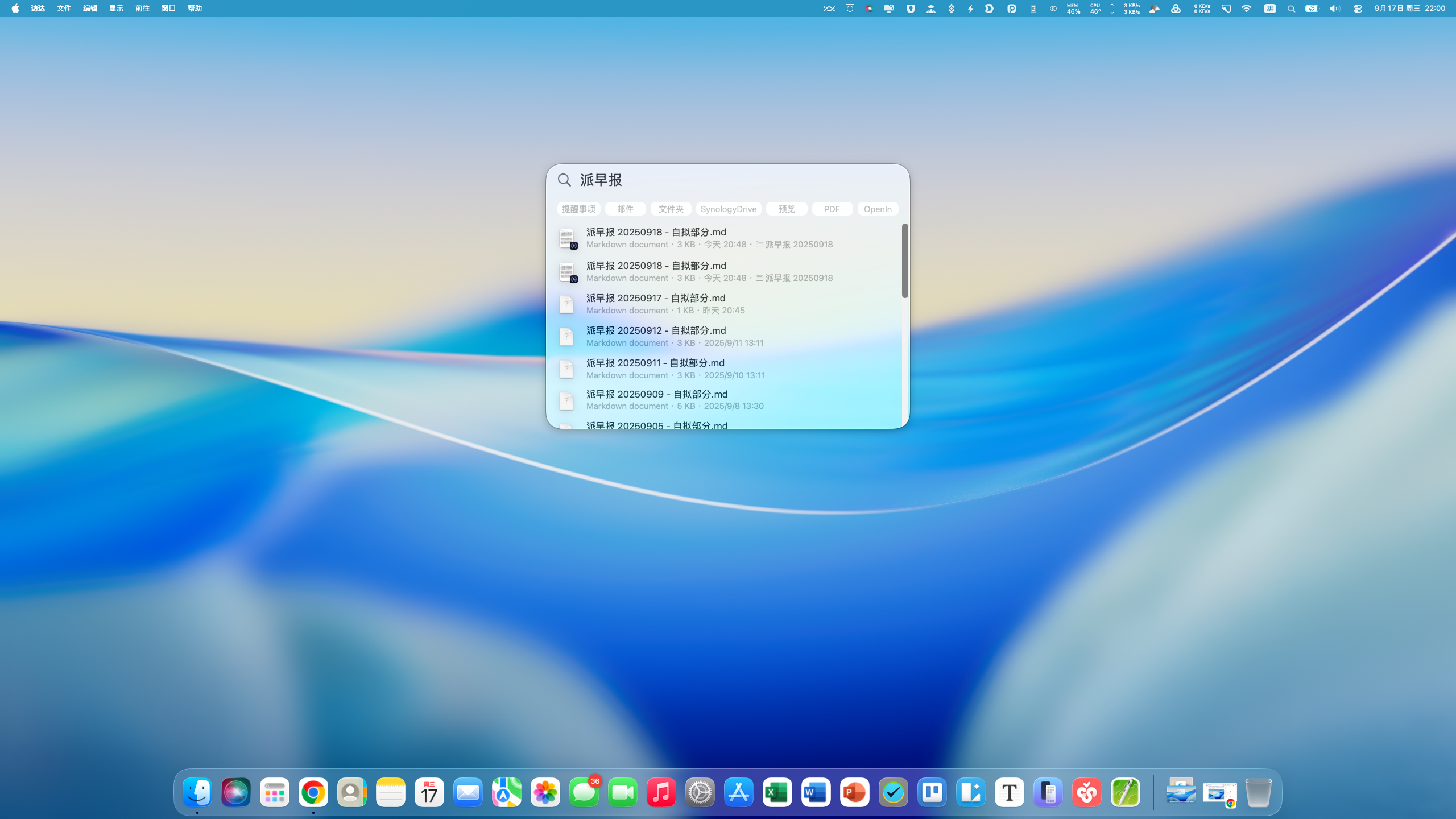 「聚焦搜索」迎来了迄今最大幅度的更新。虽然依旧保持原有快捷键不变,但功能已经全面重构。用聚焦搜索搜索文档、文件、文件夹、项目或应用时,搜索结果会自动分类展示,并依据相关性进行智能排序,结构更清晰。