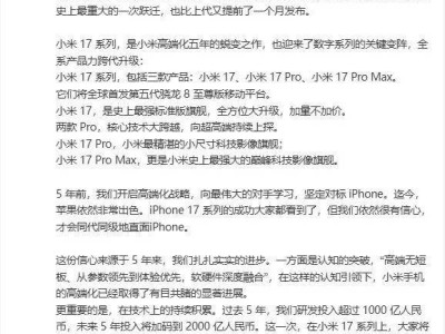 小米17“跳号”对标苹果,妙享背屏引热议,预热阶段已成焦点