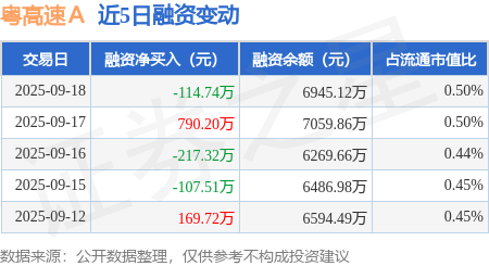 粤高速A:9月18日融券卖出1.65万股,融资融券余额7052.82万元