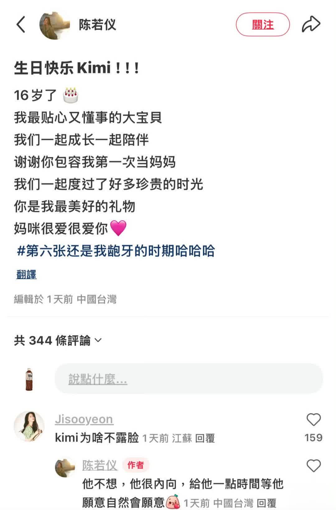 陈若仪首谈16岁Kimi不露脸:内向少年拒镜头,等他点头
