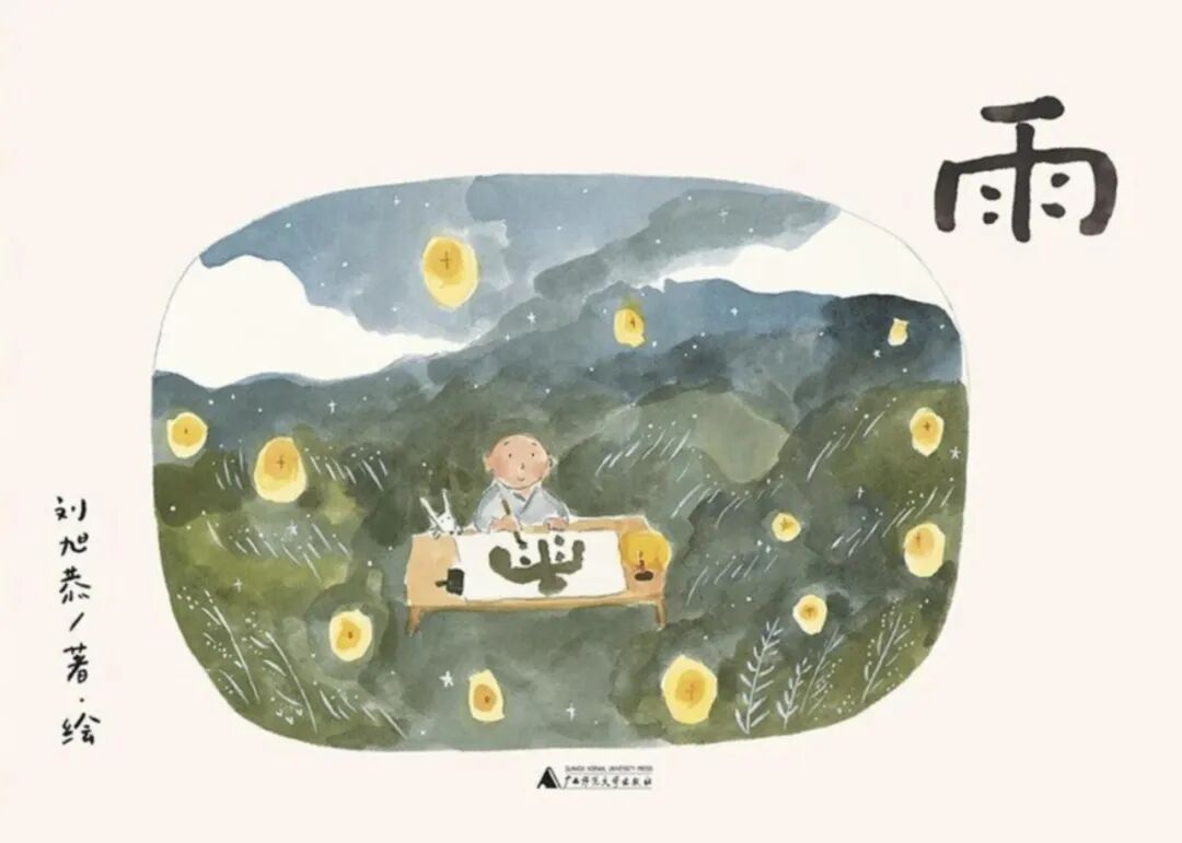 这本原创绘本讲了如此质朴又天然的故事,故事中的小和尚从未追求变得有多厉害、会诵读多少经书、能获得多少人的认可——即便他最终求来了甘露,得以“一雪前耻”,顺理成章地向他人证明自己的“价值”,他也只是带着感激默默回归了简单且自足的生活。小和尚的选择与当下这个关注度即是价值的时代背道而驰,但他对自己的感受、情感与生活的珍视,恰恰回应了今天的我们无论如何都无法感到“被满足”的心理状态。《雨》唤起了我们的文化中积淀下来的人生态度,它质朴且有力量,却渐渐被遗忘,直到我们翻开这本童稚的绘本,看到大雨落下。