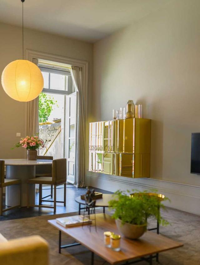 首先,在室内和院子相连的地方,屋主选了玻璃木门配纱帘。即使关上门,大面积的玻璃也能让室外的自然光充分照进室内,还能看看外面的树木花草,纱帘在保留隐私性的同时不会太影响采光。院子旁的餐厅用了更灵活的圆桌,再壁挂一个餐边柜,简易版“花园餐厅”这不就来了?