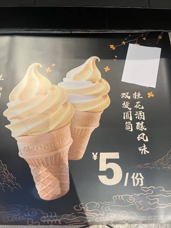 小红书网友“菠萝菠萝蜜”与“冰美式”曝光了一些套餐的宣传物料,除了上述的食品外,还有桂花酒酿风味的双旋圆筒(5元一份)。