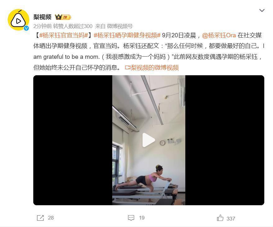 9月20日凌晨,演员杨采钰在社交媒体突然扔出一枚“幸福炸弹”——正式官宣成为母亲。她没有选择晒娃,而是别出心裁地发布了一段自己在孕期坚持健身的视频,瞬间引爆全网。视频中,她挺着明显孕肚,仍在专业指
