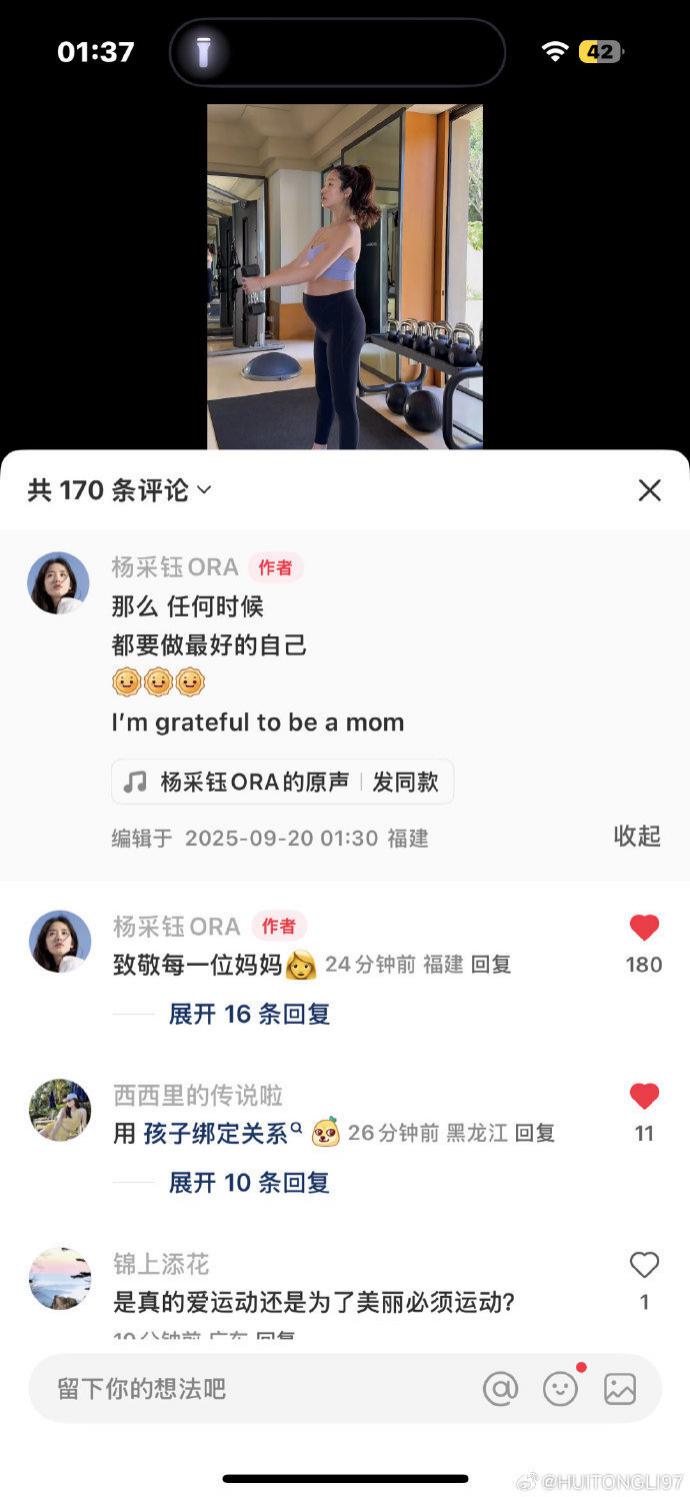 9 月 20 日凌晨,演员杨采钰在社交媒体突然扔出一枚“幸福炸弹”——正式官宣成为母亲。她没有选择晒娃,而是别出心裁地发布了一段自己在孕期坚持健身的视频,瞬间引爆全网。视频中,她挺着明显孕肚,仍在专业指导下进行训练,配文写道:“任何时候,都要做最好的自己。I am grateful to be a mom。”这份自律与活力,被网友盛赞为“新时代妈妈的态度宣言”。
