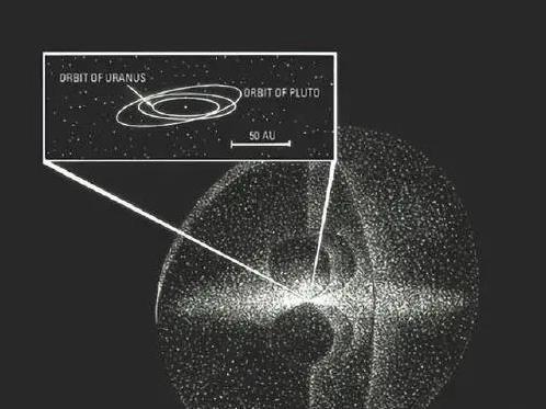 奥尔特云听过没?这是个围着太阳系的巨大云团,里面全是彗星,离太阳大概5万到10万个天文单位,差不多1光年的距离。这地方已经大到没边了!如果把太阳系缩小十亿倍,地球变成个玻璃弹珠,奥尔特云还是能把整个地球包起来。可就算这么大,它里面每立方千米平均只有三个原子,稀疏得吓人。