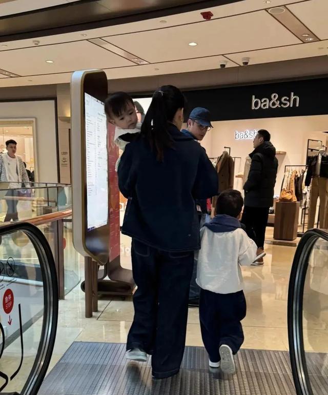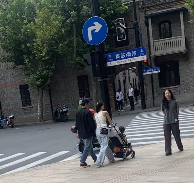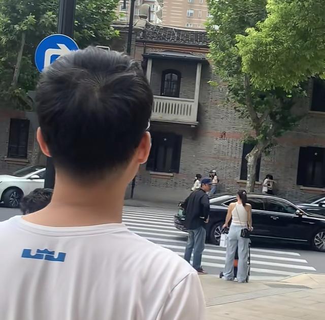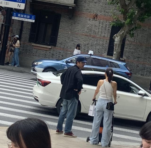 明道和家人现身上海街头,2岁女儿坐在婴儿车上,王婷萱身材真好