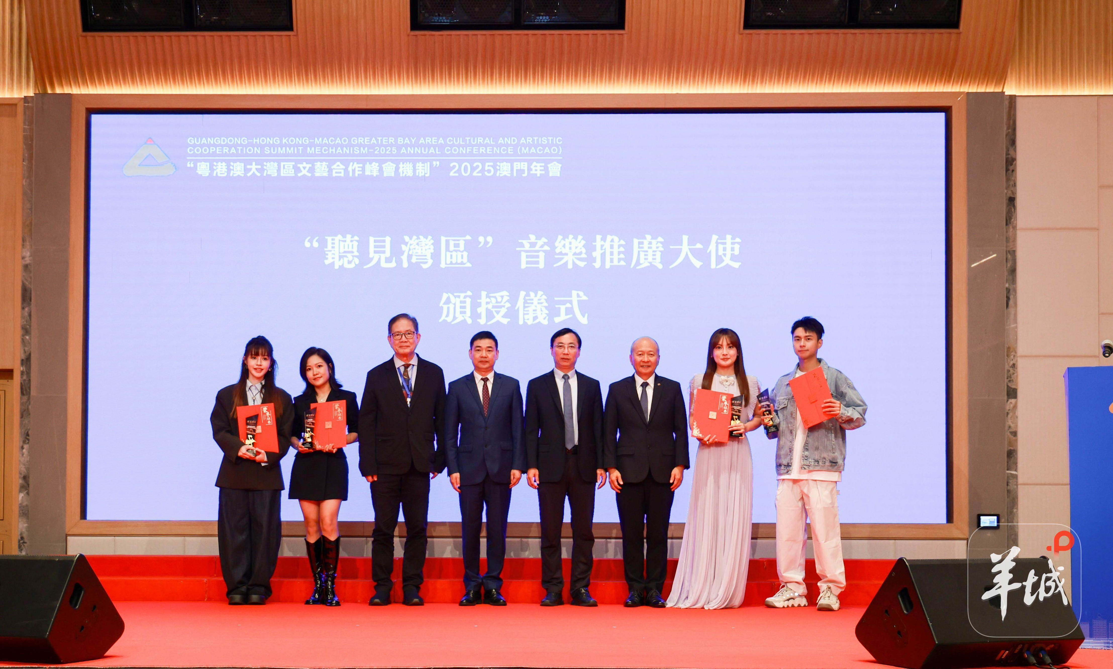 在中国文学艺术界联合会的指导下,腾讯音乐娱乐集团、酷狗音乐,联合广东省文学艺术界联合会、澳门文化界联合总会、中国文联香港会员总会,共同发布“听见湾区”系列企划之“2025十大粤语金曲”,为多位杰出音乐人代表颁发 “听见湾区”音乐推广大使证书。