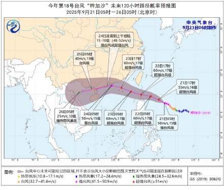 预计,23日至26日,受台风“桦加沙”影响,台湾海峡南部、南海北部海域、华南沿海将出现强风雨天气。与此同时,江淮、江南、华南等地还将先后有中到大雨,部分地区有暴雨,华南局地有大暴雨。