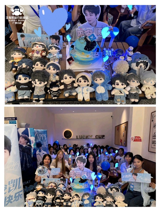 粉丝们的应援活动更是将庆生氛围拉满。北京首都机场 T3 航站楼 LED 双屏循环播放生日贺词,过往旅客都能感受到粉丝对王俊凯的爱意;郑州、重庆等 20 余城地标大屏同步点亮 “蓝色海洋” 主题,城市的夜空被蓝色光芒照亮,宛如一片浩瀚星空。后援会联合发起 “潮汐计划”,向贫困中学捐赠卫生用品,呼应王俊凯一直以来关注弱势群体的理念,以实际行动践行偶像传递的正能量;还联合清华大学设立 “焕蓝梦想基金” AI 奖学金,助力学子在科技领域追梦。在重庆凯德广场、崇左等地,举办了生日主题打卡活动,粉丝们纷纷集结在签名祝福墙前,写下对王俊凯的祝福,用满满的仪式感为偶像庆生。