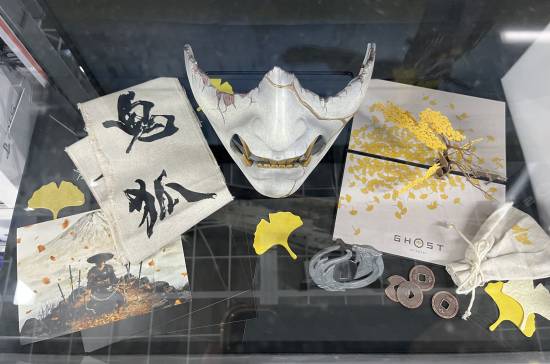 根据推特博主@Genki的分享,目前日本PlayStation线下店中已经换上了《羊蹄山之魂》主题,展示了游戏的实体版包装,以及典藏版中刀镡、战鬼面具、收藏卡、钱袋子、钱币、银杏树纸艺等实体内容,一起来看看吧!