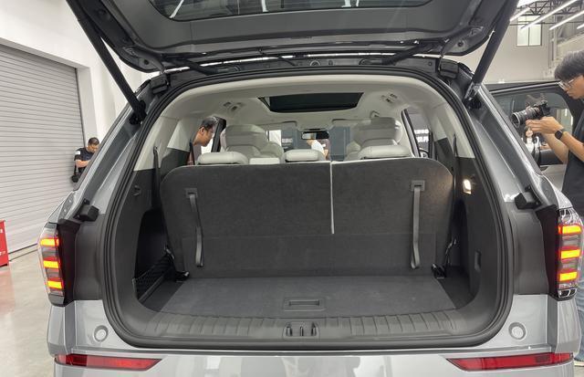 除此之外,该车的储物空间也不小,作为一台7座SUV,2026款福特锐界L两款座椅布局的车型在第三排全部坐人的情况下,后备箱空间为309L,三排座椅放倒的前提下,后备箱空间达到969L,而二三排同时放倒之后,该车后备箱空间达到2876L。