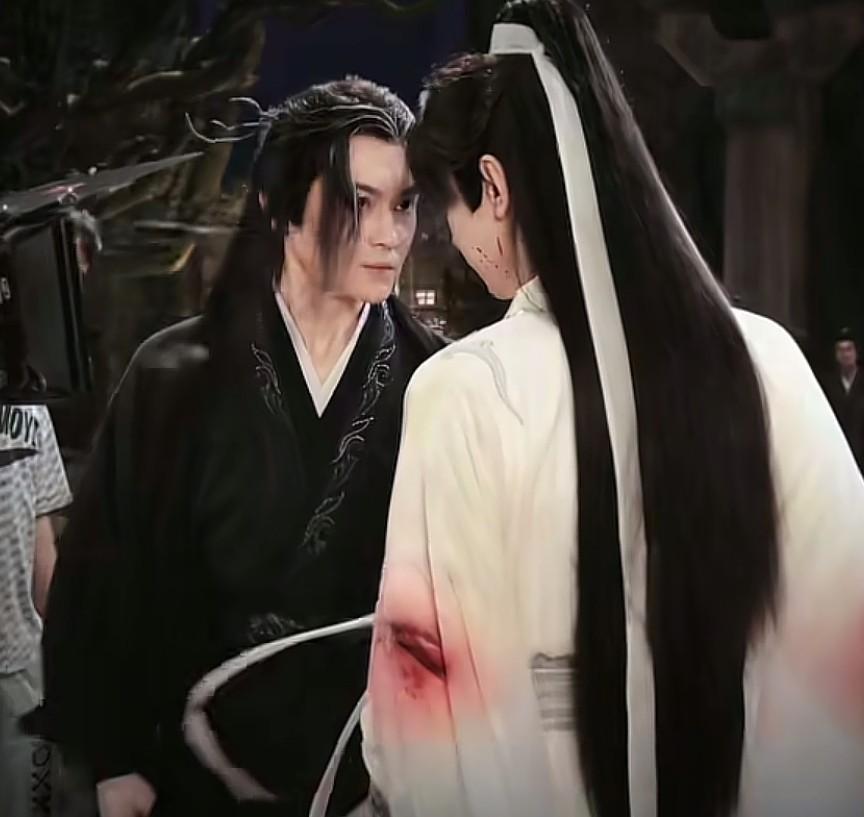 一身黑衣老练持重,坚定又带着戾气的眼神,仿佛都有杀伤力。黑白相间的发色,搭配这种让人看不透却又强大的气场,一下子就把武功高强的大侠形象稳稳的立住了。