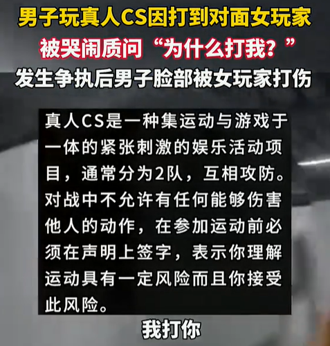 当他好奇的询问对方为何这样做的时候,对方竟然将头盔一摘,坐在地上,委屈的喊着:“你打我!”视频拍摄者又好笑又好气——真人竞技不就是要相互“打”吗?怎么还不允许别人打她了呢?视频评论区对此最多的评价就是“巨婴”。