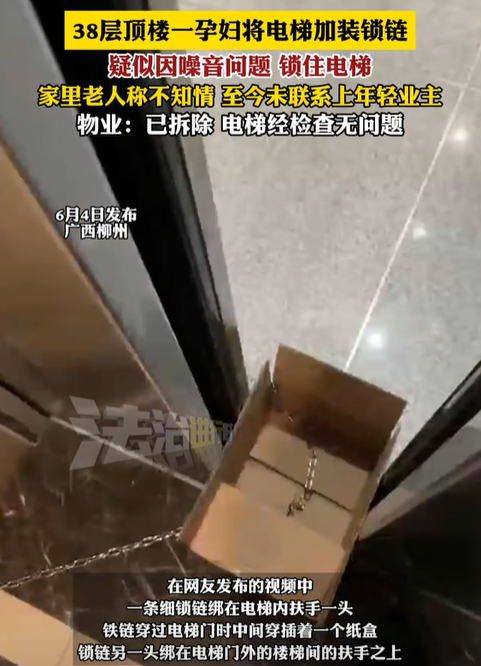 自我中心主义:情绪特权者的日常操作广西柳州的一个住宅区,突然有用户发现电梯在能够运行的情况下一直无法使用,这位用户正好也没什么事,就决定去探查原因。这一查不要紧,直到顶层38层,才发现电梯门被一根铁链连接的纸箱卡着,电梯门无法关闭,始终停在38层。