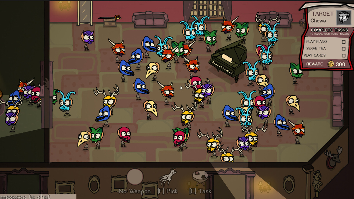 你和你的朋友被邀请来死亡!The Masquerade 是一款适合 2 到 8 名玩家的谋杀派对游戏,你同时既是目标又是猎人。伪装成 NPC 来躲避你的猎人,同时收集足够的线索,揭露并消灭你的目标。