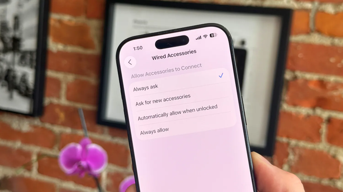 在本次更新中,苹果还悄悄为 iOS 26 带来了有线配件(USB)权限控制,让 iPhone 用户能更好地抵御 USB 连接攻击手段。