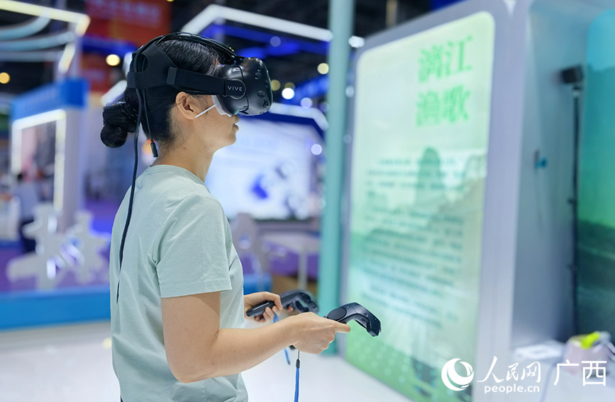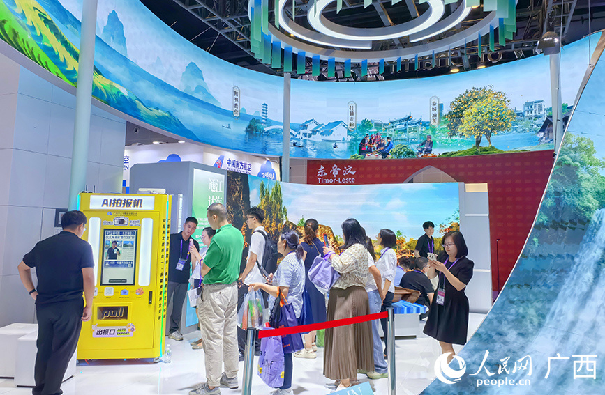人民网南宁9月21日电 (付华周)9月17日—21日,第22届中国—东盟博览会“魅力之城”桂林展区惊艳亮相。现场以AI技术为笔、桂林山水为卷,打造出一场虚实交织的“山水奇旅”,吸引众多市民游客排起长队,争相体验“AI+文旅”的新奇玩法,感受不一样的东博会。