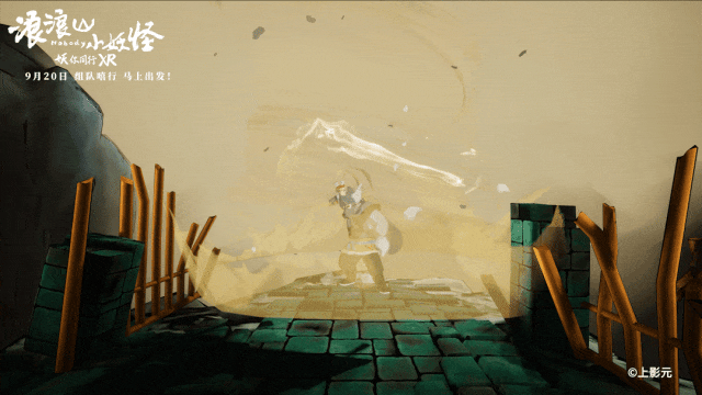 如果说电影通过银幕传递美学,那么XR体验则让观众走进画面。《浪浪山小妖怪:妖你同行XR》以三维技术探索电影标志性的水墨美术风格,构建可步入、可交互的国风奇幻世界。玩家将置身于青草涌动的浪浪山坡地,感受微风吹拂草尖的细碎声响;驾驭“降妖除魔飞毯”,穿梭在悬浮的洞壁与奇崛山石之间;又或是潜入双狗洞的幽深隧道,在昏暗与隐秘中摸索前行。