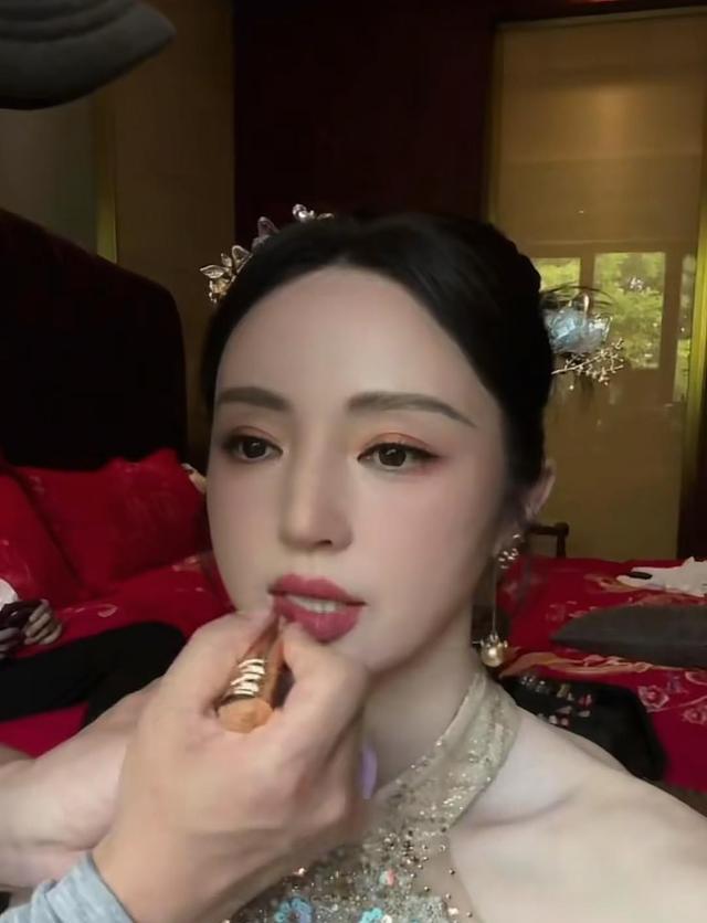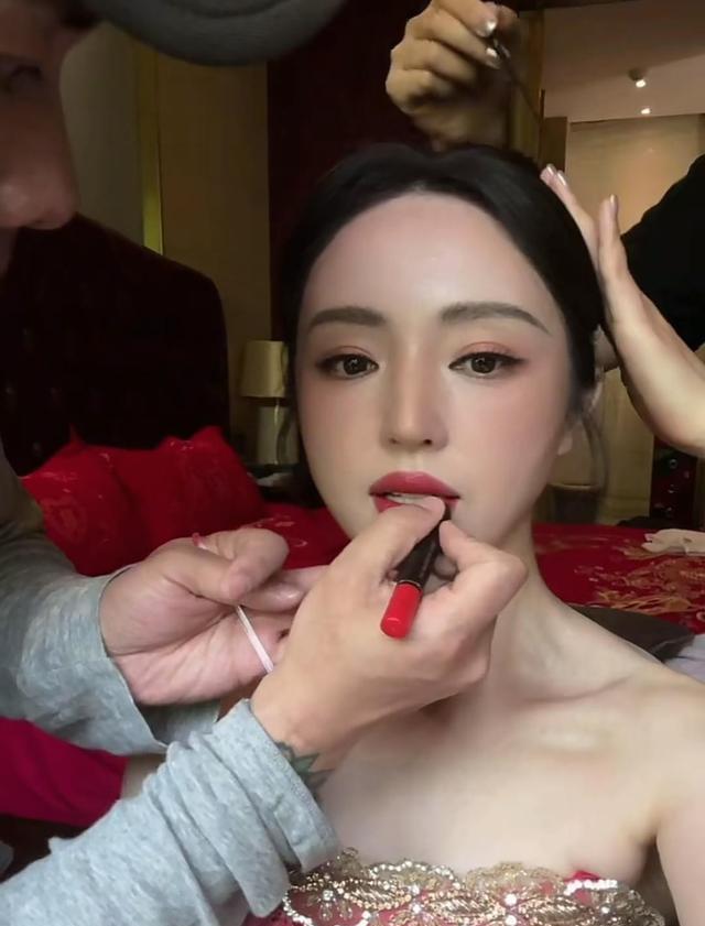 化妆那会,她整个人平静,表情没什么起伏,新娘子结婚那种开心劲,没怎么见着,节目里不是说过喜欢海岛婚礼嘛,最后还是在酒店,心里头多少有点事,没那么兴奋,眼神没怎么亮起来。