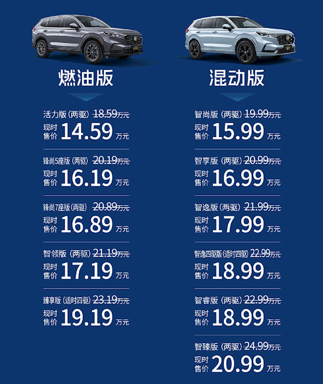 快科技9月22日消息,东风本田CR-V 30年荣耀款正式上市,共推出11款车型,指导价18.59万-24.99万元,限时售价14.59万-20.99万元
