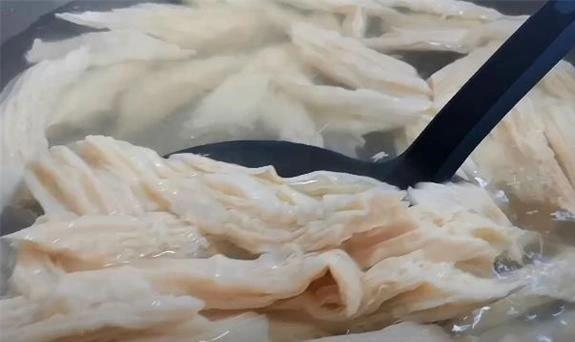 接下来处理腐竹和木耳。锅里烧开水,先把腐竹扔进去焯一分钟,捞出来控水。木耳再下锅,焯五分钟,捞出来也控干水。焯水能去掉腐竹和木耳的生味,口感更好,别跳过这步。