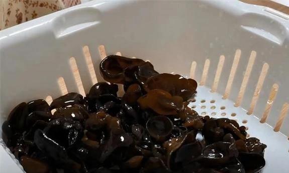 木耳也得提前泡。泡好的木耳洗干净,撕成小块,备用。木耳滑溜溜的口感,和黄瓜的脆、腐竹的软搭在一起,层次感满满。泡木耳的时候,水里加点盐,能洗得更干净。