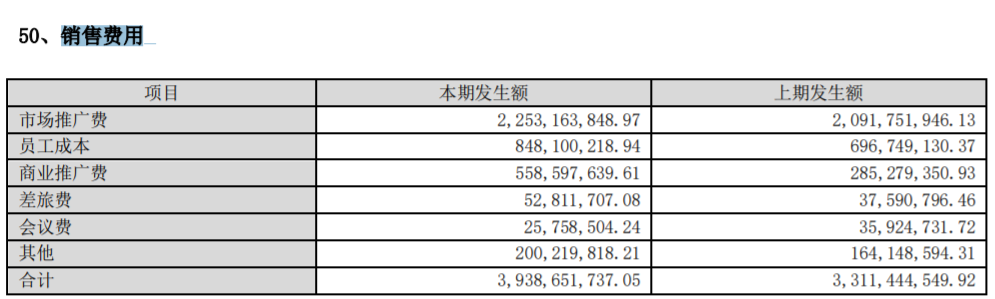 2025年上半年,该公司销售费用高达39.39亿元,同比增长18.94%,销售费用率达26.6%。其中,商业推广费用同比增长超90%至5.6亿元。