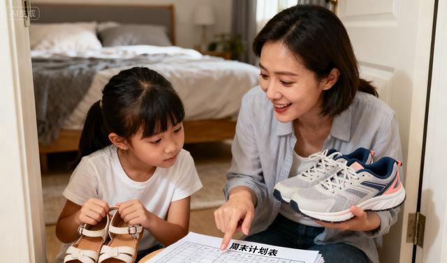 这时候别强硬要求必须听我的,可以肯定他的想法:你有自己的想法特别好,知道喜欢什么、想要什么,这很棒。然后再一起找解决办法:你喜欢下棋是好事,那咱们看看能不能把绘画班调到周日,周六留时间给你下棋;凉鞋确实好看,但今天要去公园跑跳,运动鞋更舒服,等周末去超市,咱们再穿凉鞋好不好?