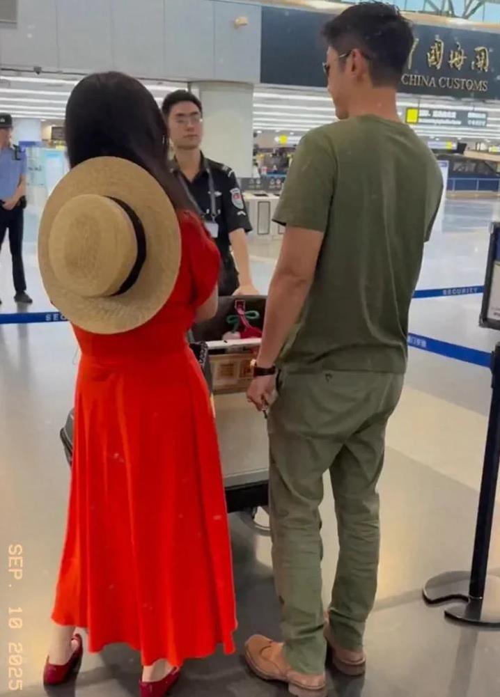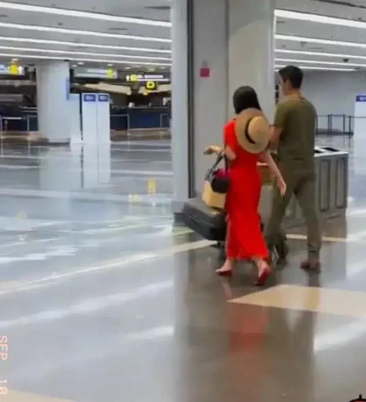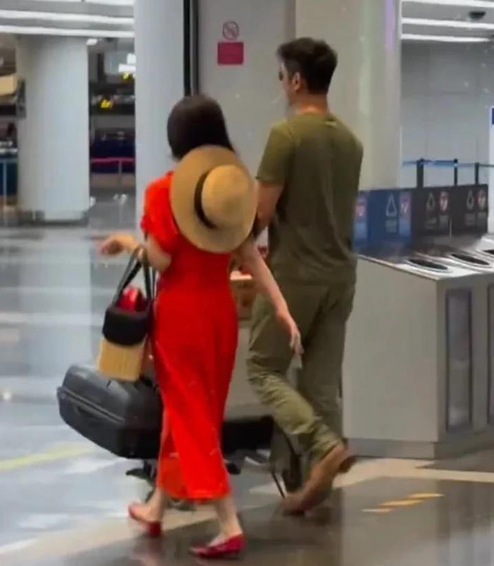 霍思燕44岁惊艳机场,红裙红鞋美如新娘,杜江低调护妻甜炸了?