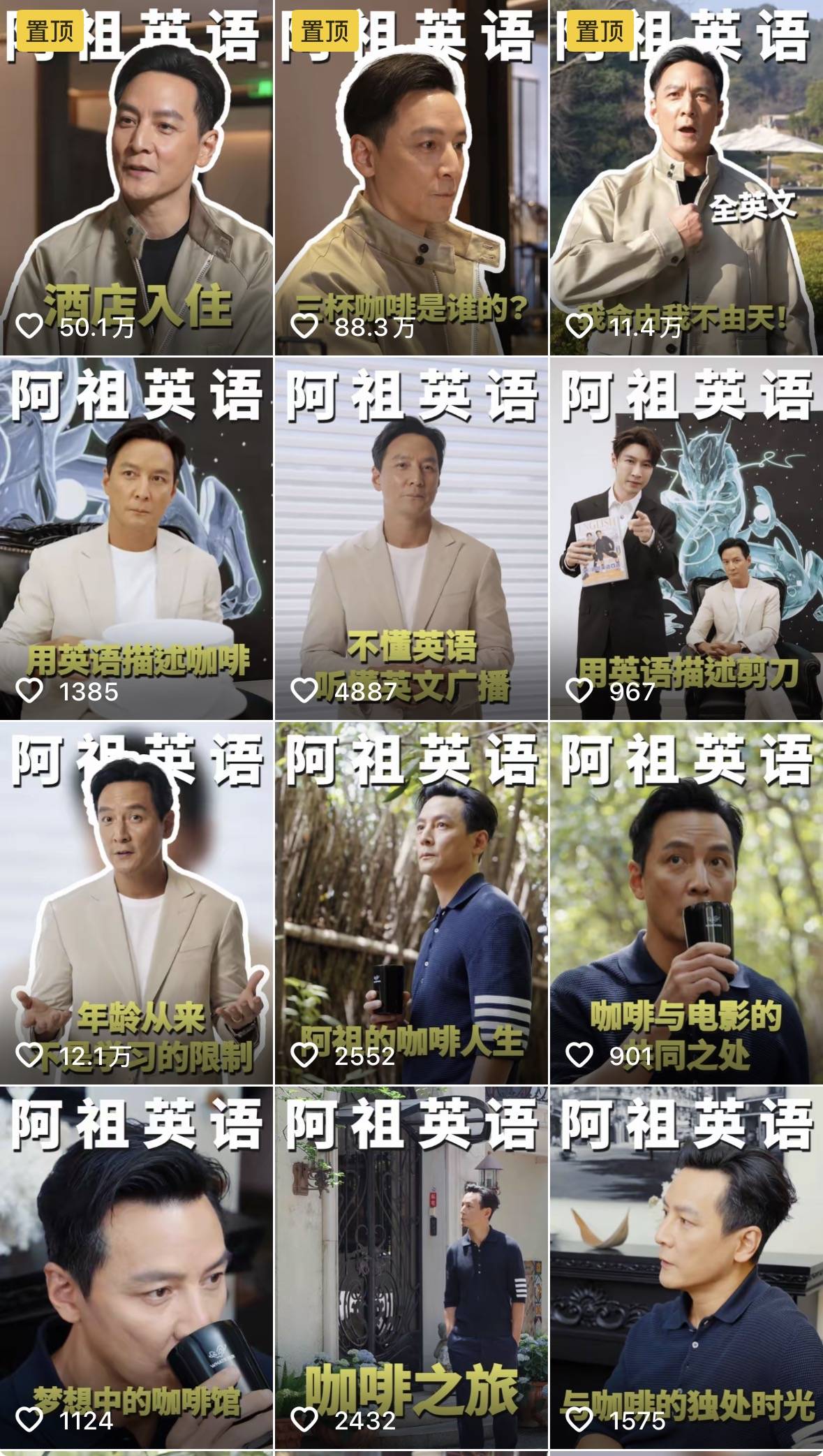 再者,卖课也成为明星维持曝光度的 “新抓手”。在注意力经济时代,商业价值与曝光度直接挂钩。通过课程宣传,明星可在短视频平台发布教学片段、干货节选,引发用户互动:比如“吴彦祖教英语”的视频单条获赞 88 万 +,# 阿祖英语 #话题阅读量破亿,既强化了个人标签,又维持了大众关注度,为后续演艺事业或其他合作奠定基础。