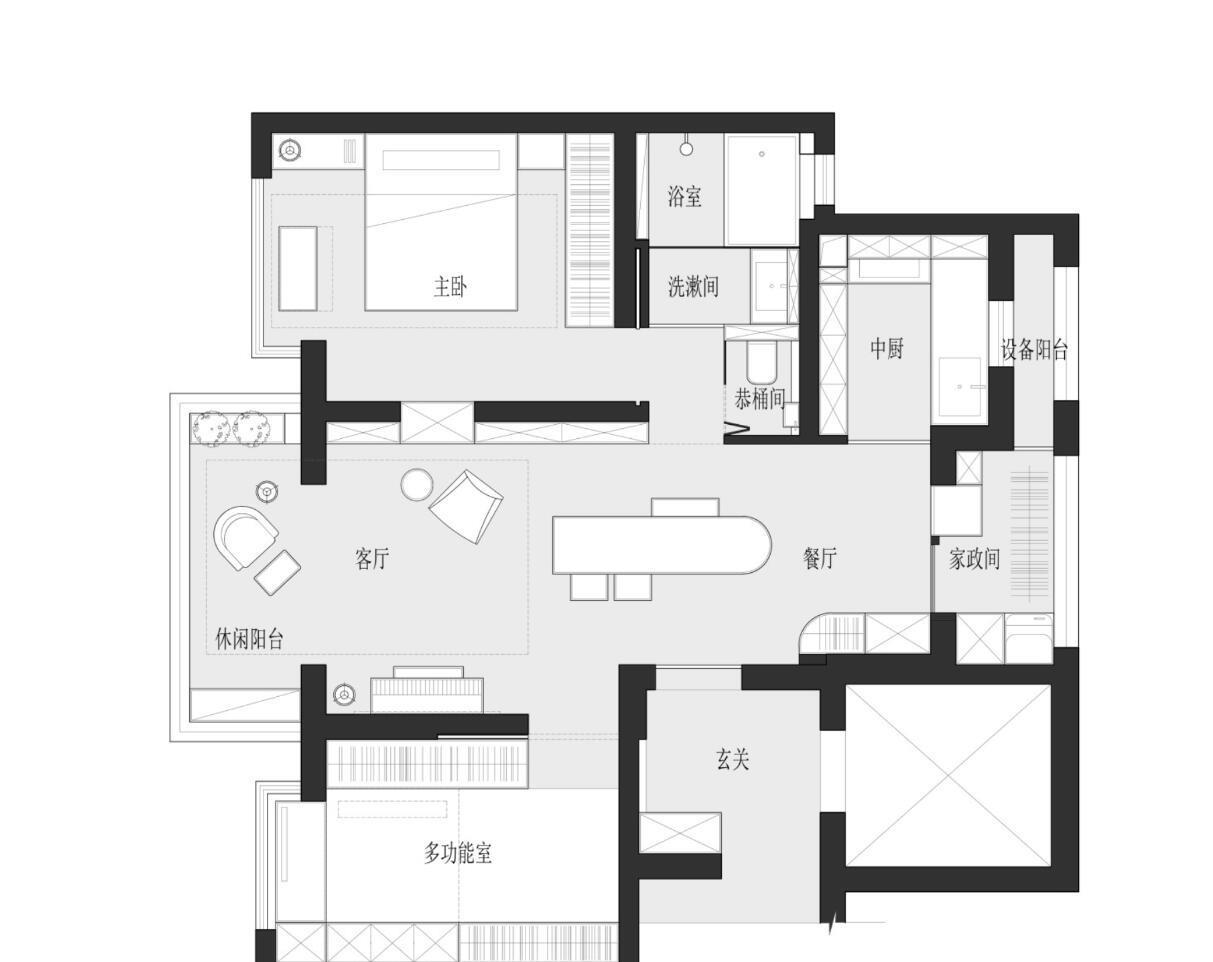 4、北阳台以独立的家政区定位,让面积得到充分利用。