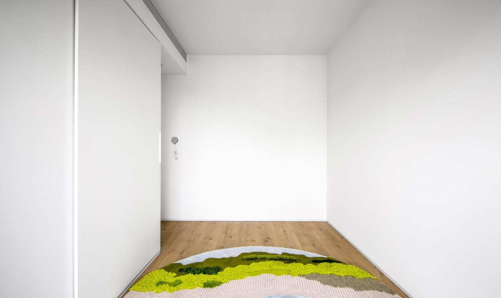 在家里只有两个人居住的情况下,次卧室整体做了抬高处理,再铺上一块大地毯,无论是用来休闲,还是瑜伽,都非常实用。同时,由于地面安装了地暖设备,所以直接用来睡觉,也是一点问题都没有的。