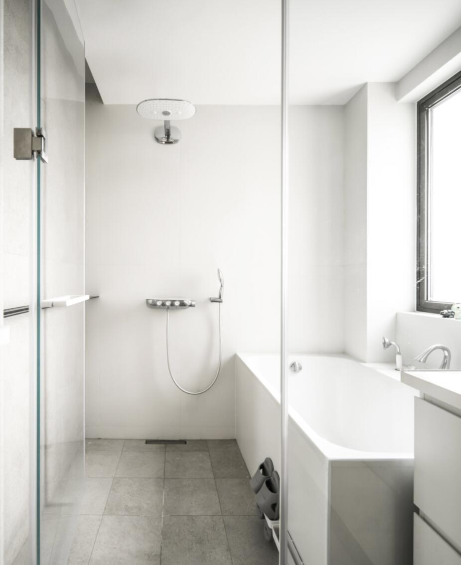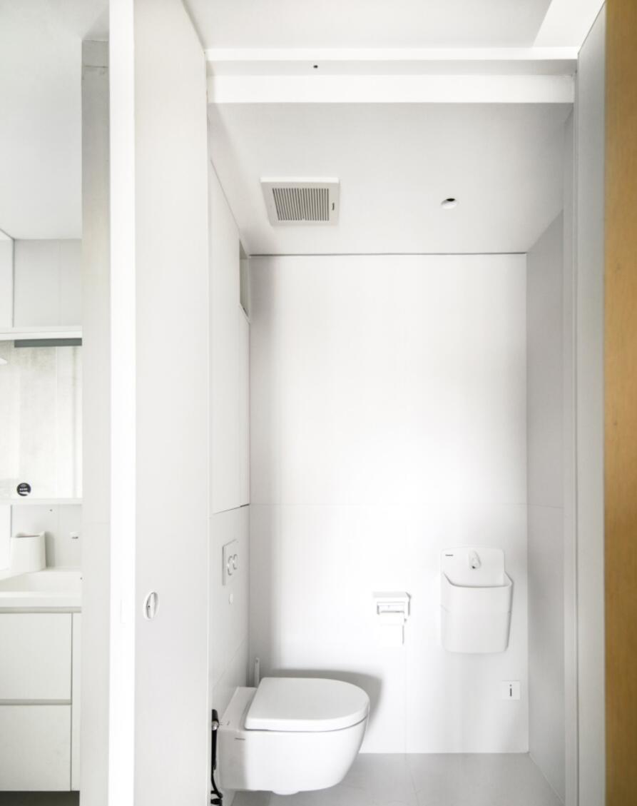 为了最大化在生活中做到互不打扰,马桶则移了出来。虽说看起来有些逆常规,但恰恰是这个细节化处理,在卫生间尺寸尴尬的情况下,巧妙地平衡了各个功能区的使用率。