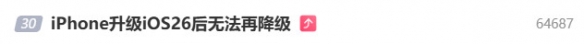 今日,苹果公司关闭了iOS 18.6.2及更早版本的签名验证,这意味着已升级至iOS 26的iPhone用户将无法通过官方渠道降级回旧版系统。这一话题迅速登上微博热搜,引发用户广泛讨论。