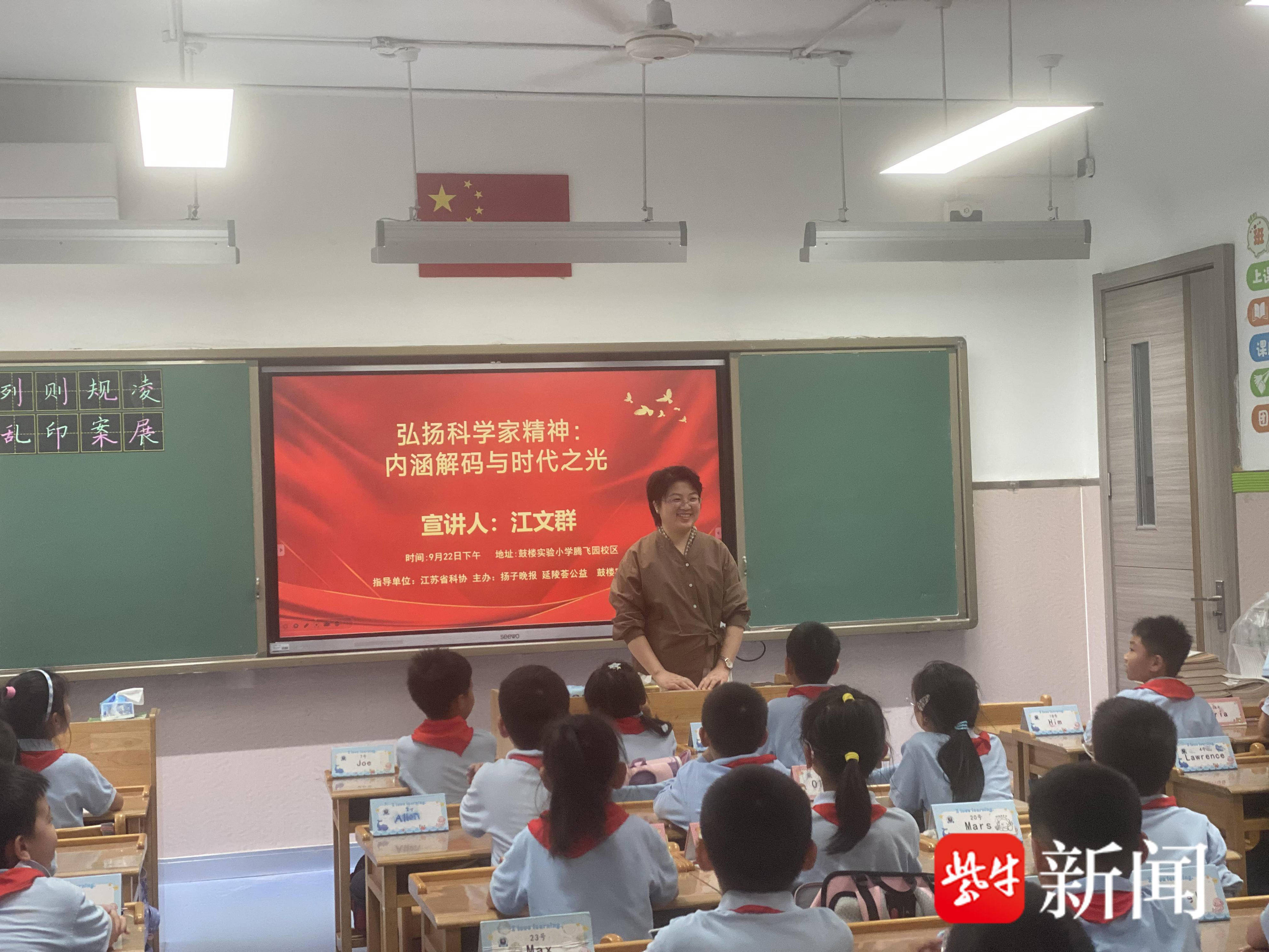 近日,由江苏省科学技术协会指导、高级家庭教育指导师江文群主讲的《22年造“天眼”、1731克月壤:科学家精神如何影响00后?》专题讲座在鼓楼实验小学举办。讲座以钱学森、南仁东、邓稼先等科学家的事迹为案例,