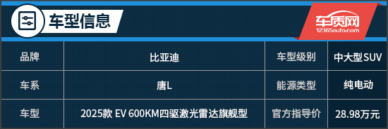 比亚迪唐L EV凭借硬核技术矩阵与全能产品力,不仅重新定义了20-30万级大家庭SUV的价值标杆,更在多场景出行中展现出从容不迫的实力。面对高端纯电SUV市场的激烈竞争,其以扎实的产品底蕴和领先的科技体验,展现出强劲的竞争姿态,真正实现了“科技为家庭所用”,成为值得信赖的纯电出行新选择。