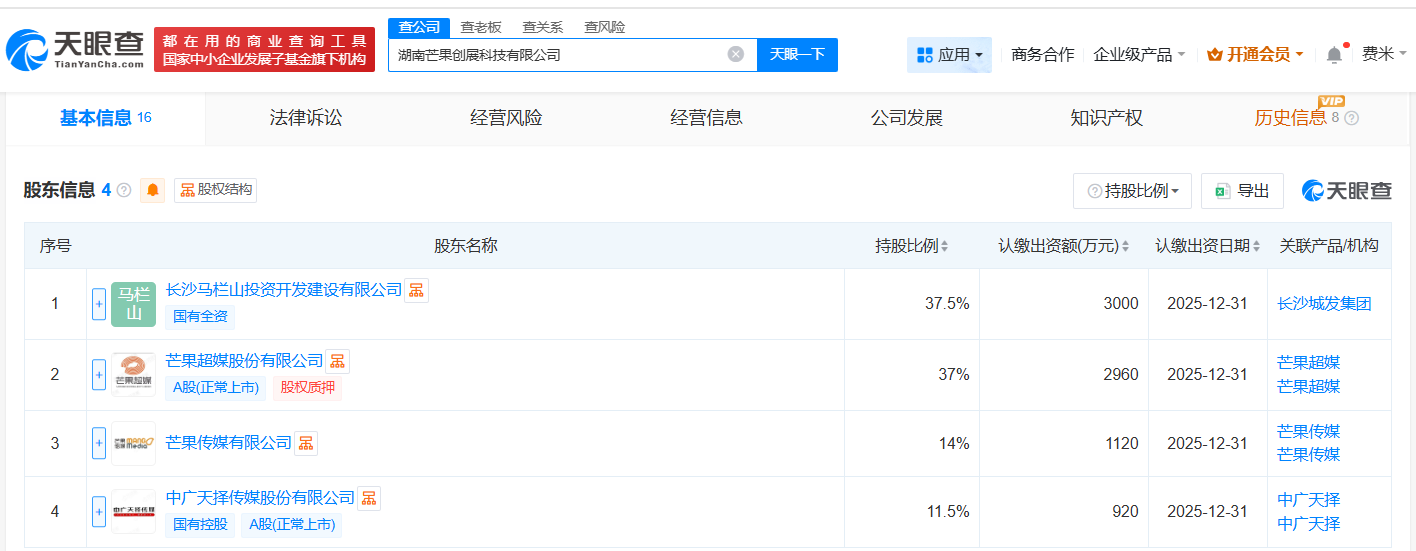 芒果超媒等成立创展科技公司 注册资本8000万